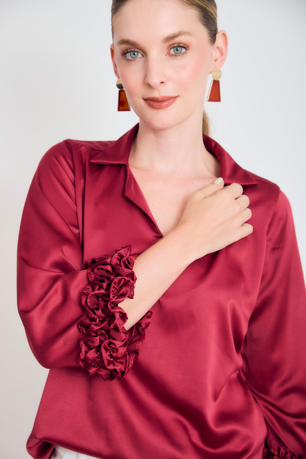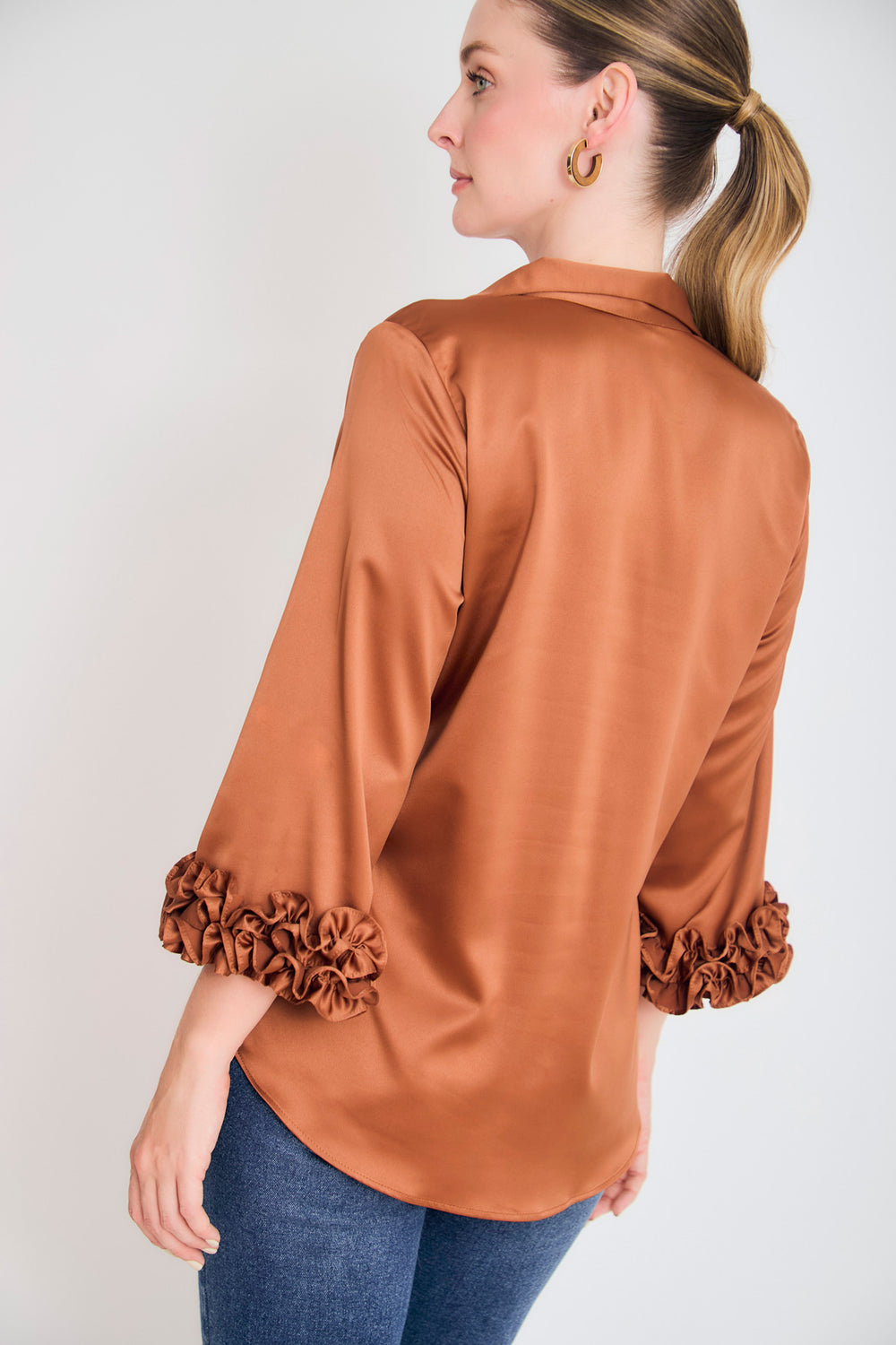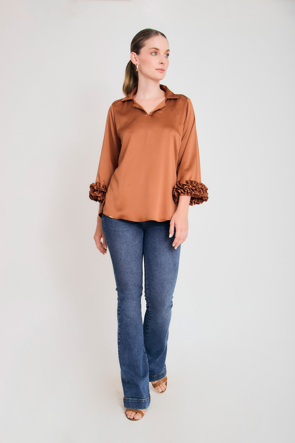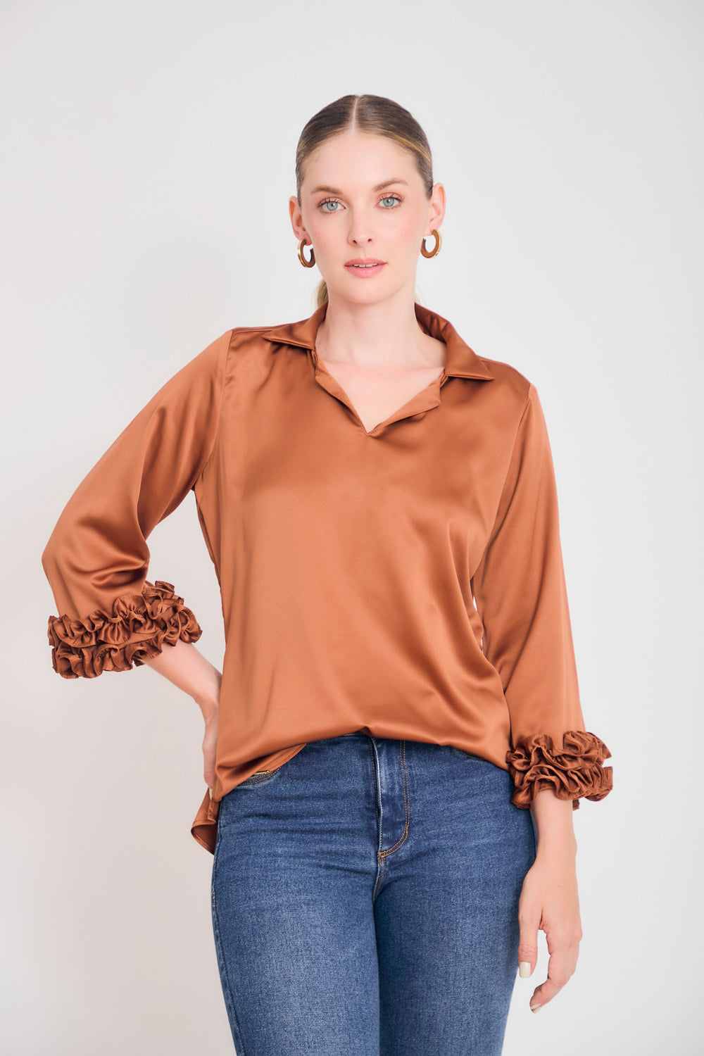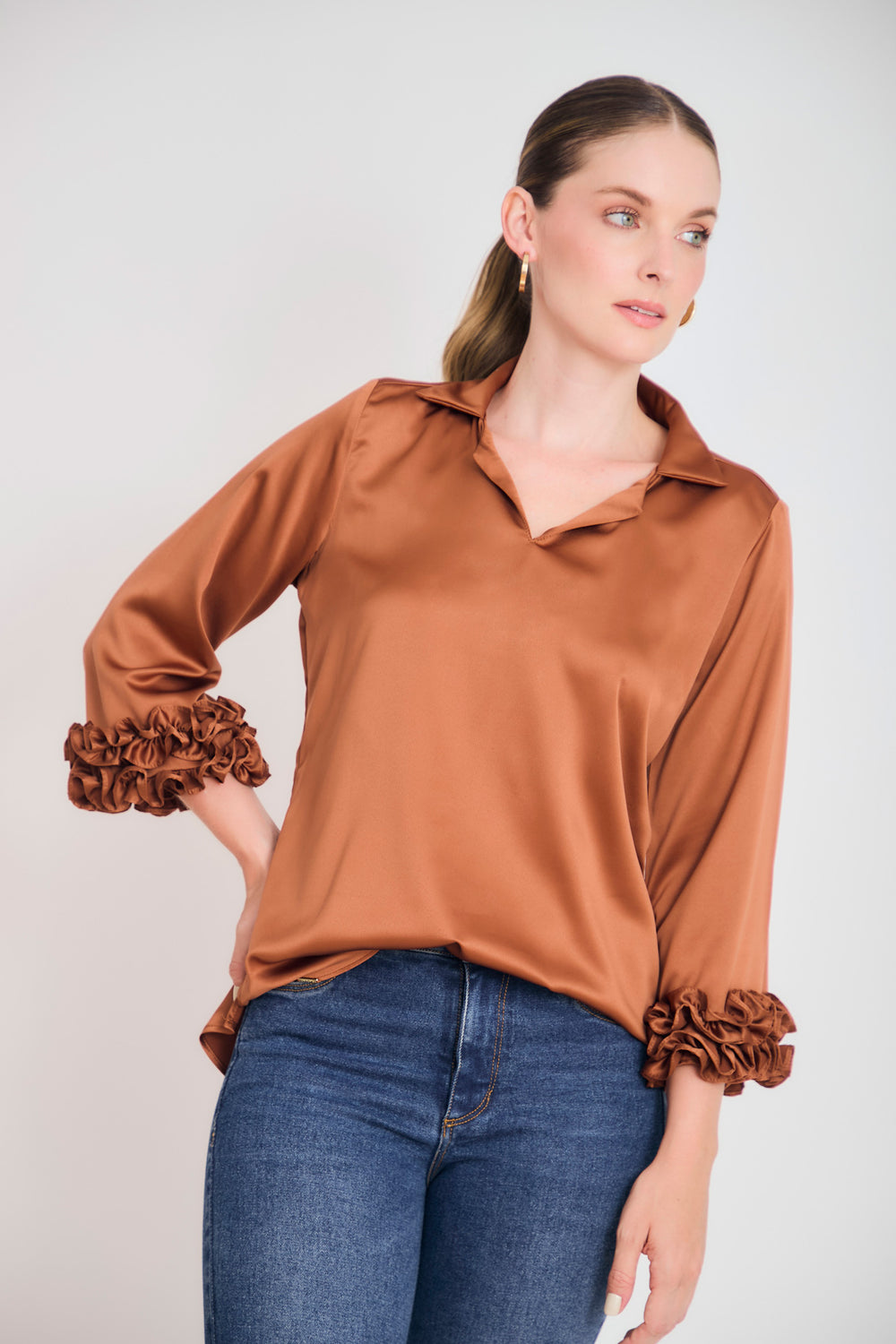 Bluson manga 3/4 puño con ruches en sateen