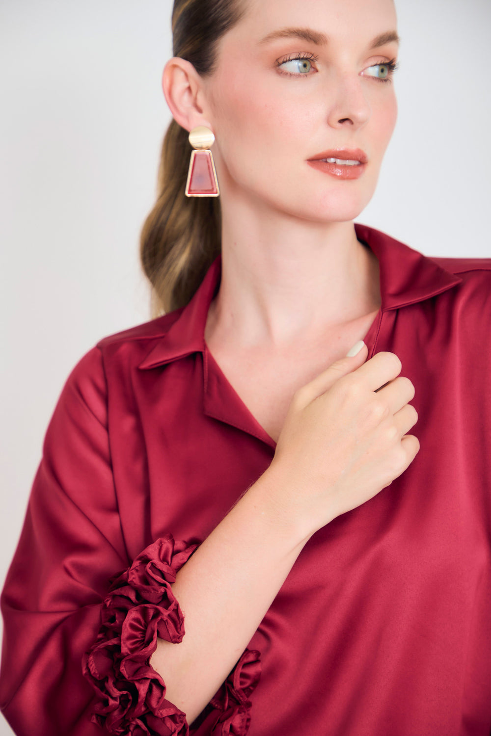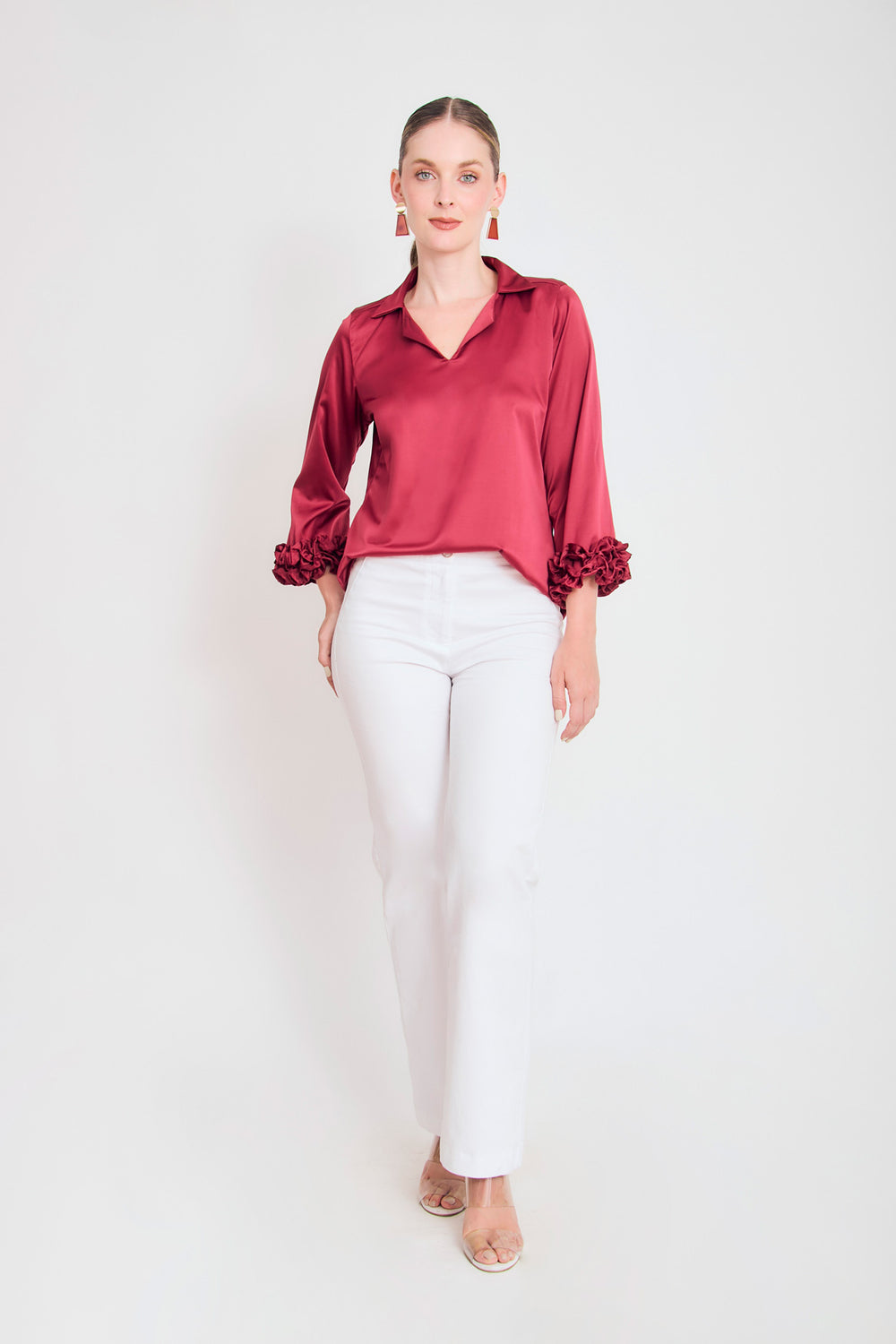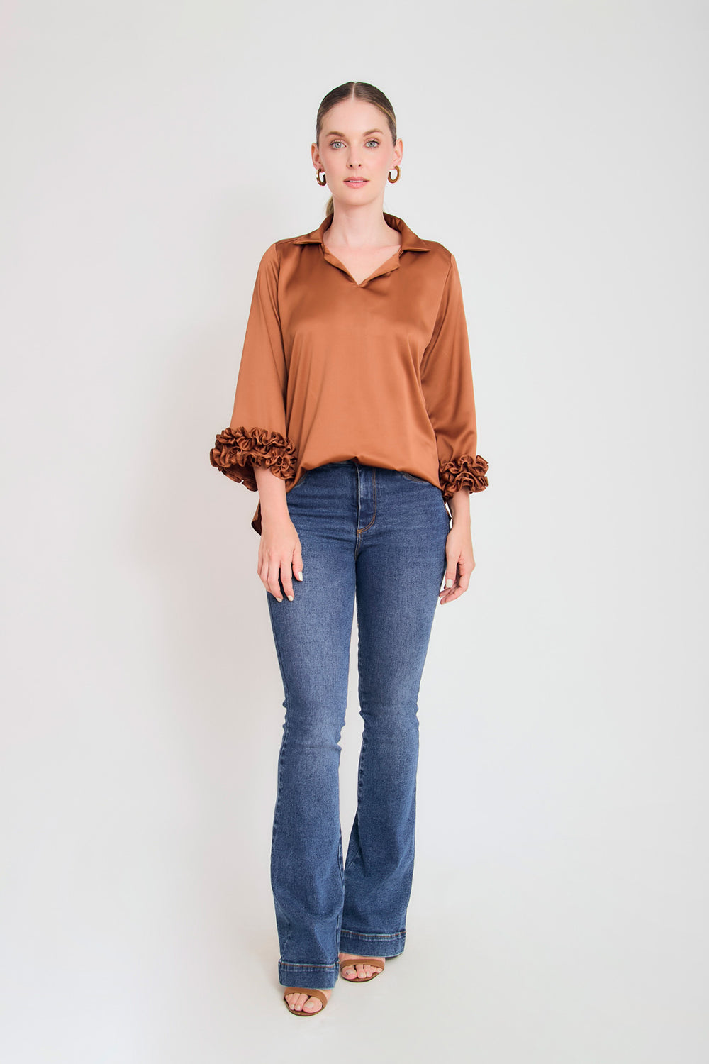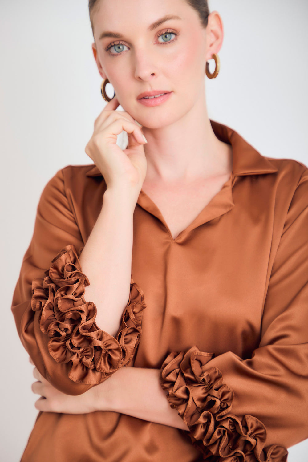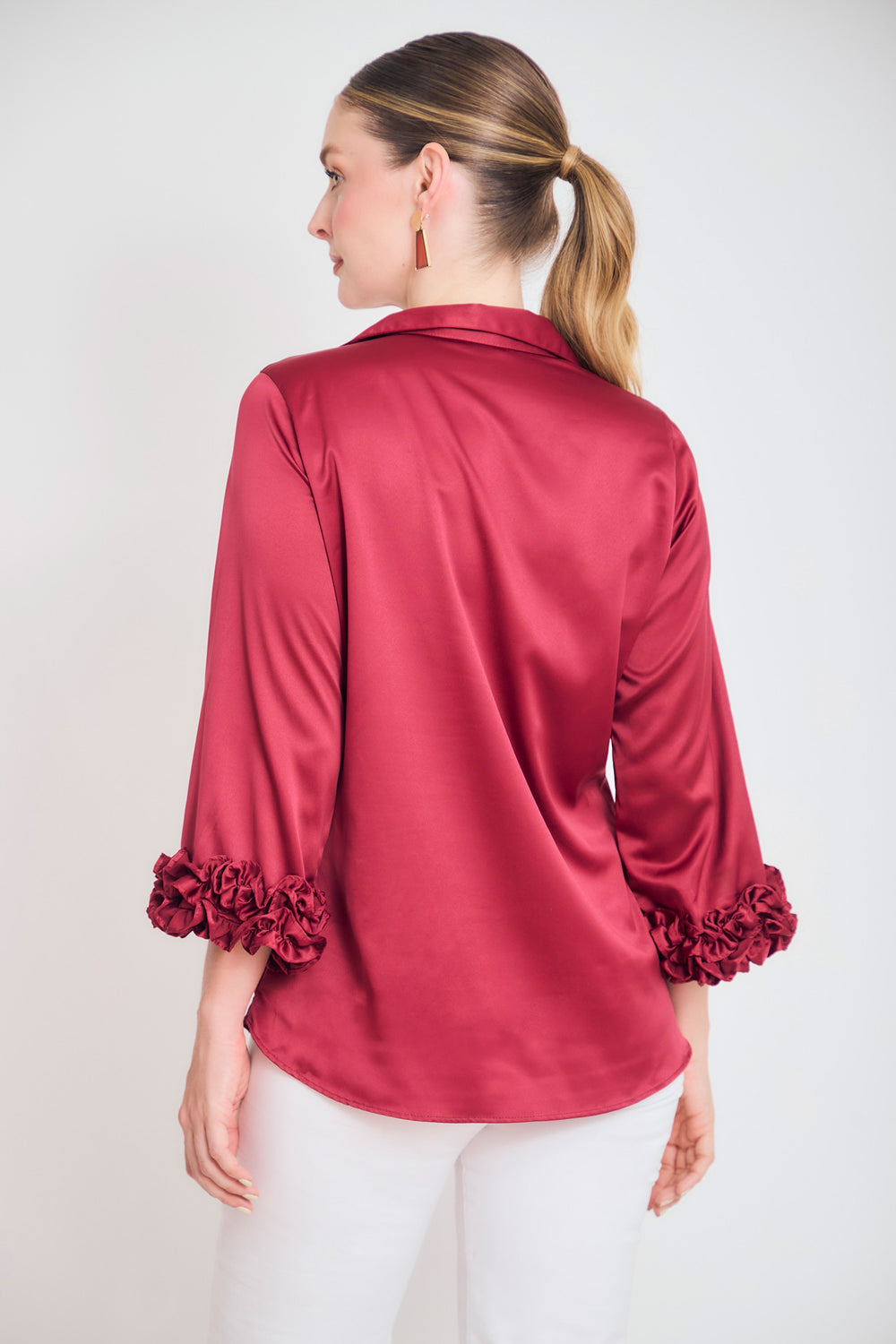 Bluson manga 3/4 puño con ruches en sateen