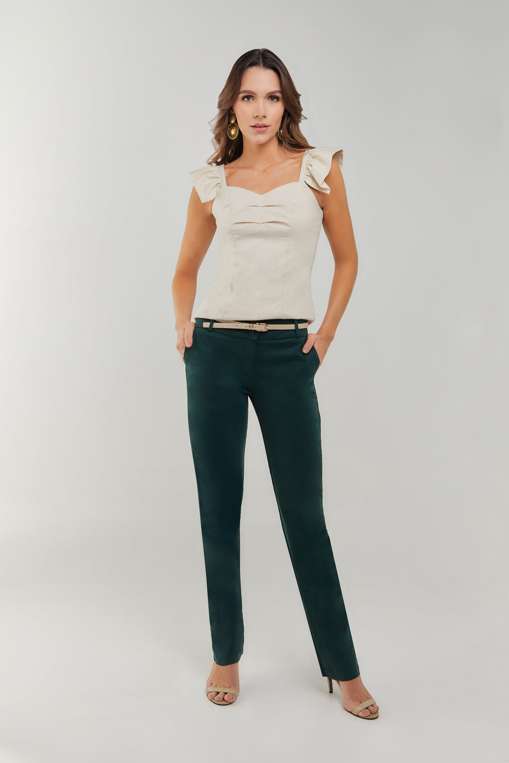 Una prenda básica que se convertirá en un infaltable en tu guardarropa, por la cantidad de combinaciones que puedes hacer. Este pantalón tiene tiro medio y bota recta, su composición es en drill que es una tela suave, resistente y fresca.