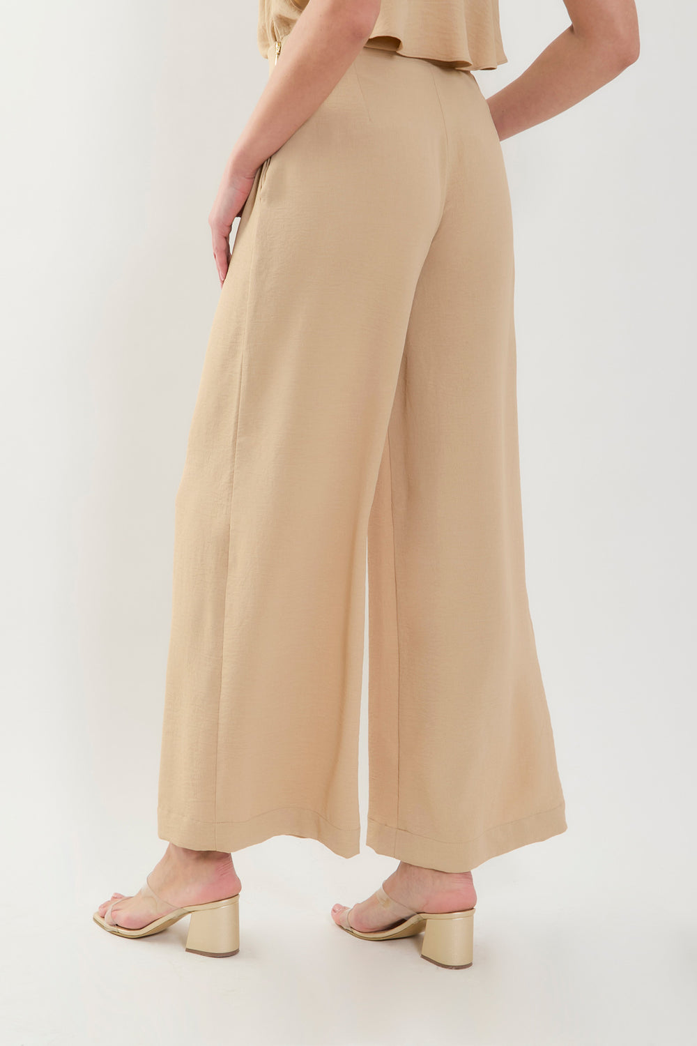 Pantalón Palazzo de silueta amplia y elegante, con pretina ajustada que incluye cinturón y detalle del ojal metálico. Una prenda versátil que estiliza la figura y añade un toque moderno a cualquier look